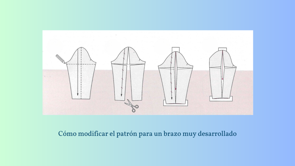 Para este caso el «método del giro» resulta ideal, porque añadimos ancho sin alterar la copa de la manga (la parte superior), vamos a verlo.