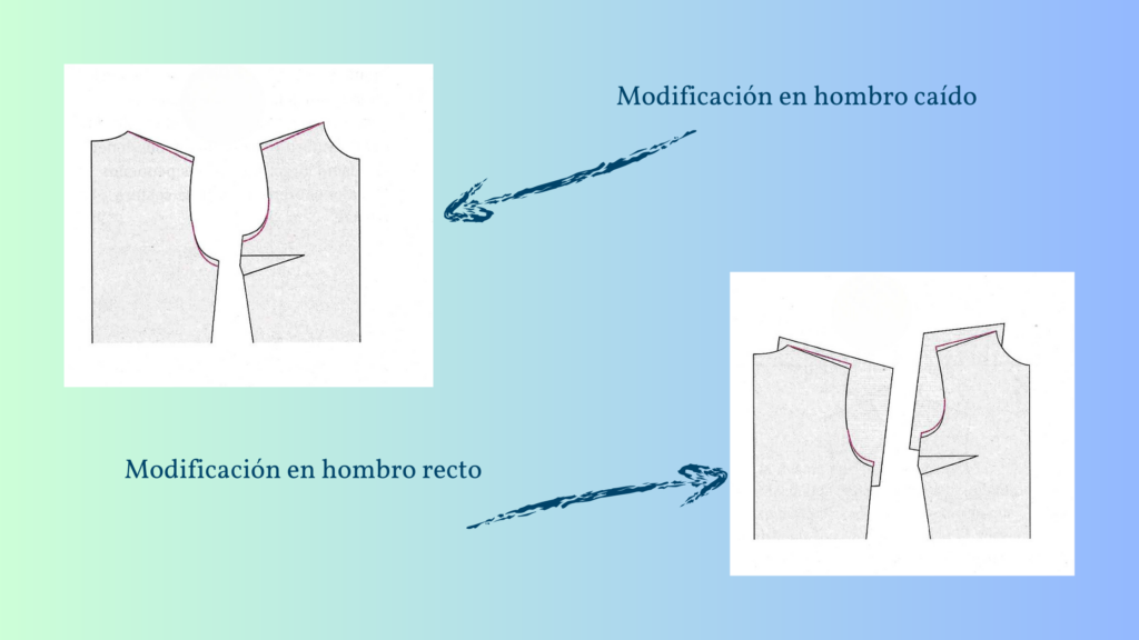 En el caso de tener los hombros rectos, rectificaremos el patrón justo al contrario.
