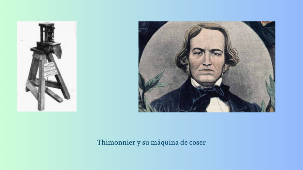 Aunque la primera máquina de coser con un verdadero significado fue la diseñada por el francés Barthélemy Thimonnier en 1830, que ideó una máquina fabricada en madera que era capaz de dar una puntada con un solo hilo.