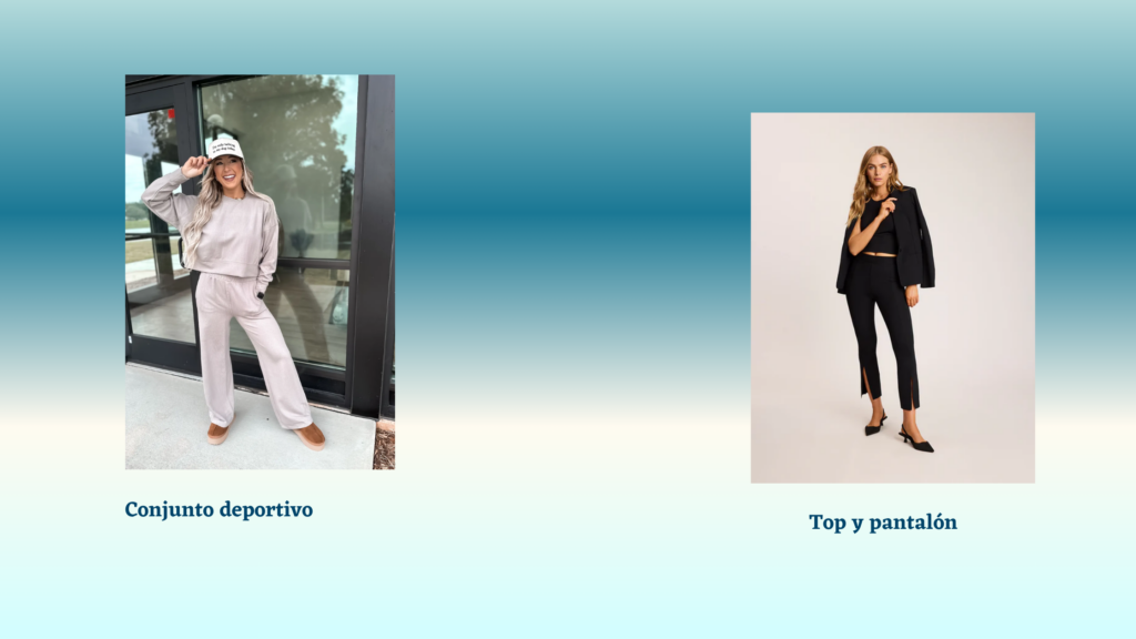 Elige entre un conjunto deportivo o uno más casual con un top corto y un pantalón recto.