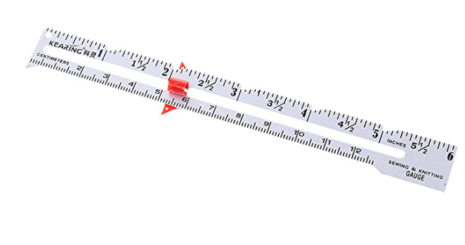 El calibre de costura, es muy útil para trazar cómodamente los márgenes de costura tanto en la tela como en los patrones.