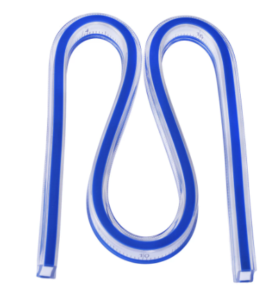 La curva flexible, es una tira de goma que puedes doblar en la forma que necesites, con lo que es ideal para realizar curvas en los patrones, más aún si no tienes soltura con las reglas de forma redondeadas.