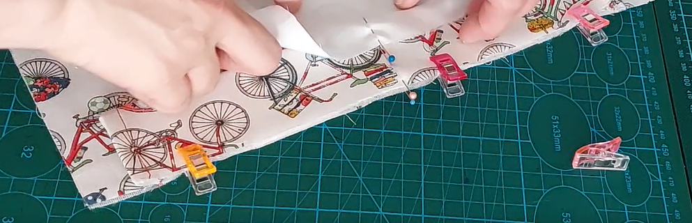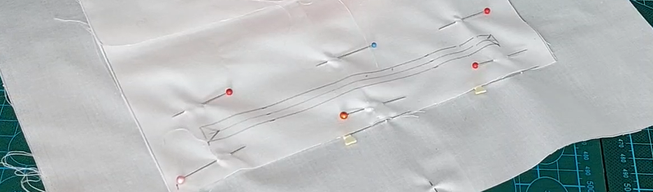 Cogemos con alfileres y damos un pespunte a un centímetro.