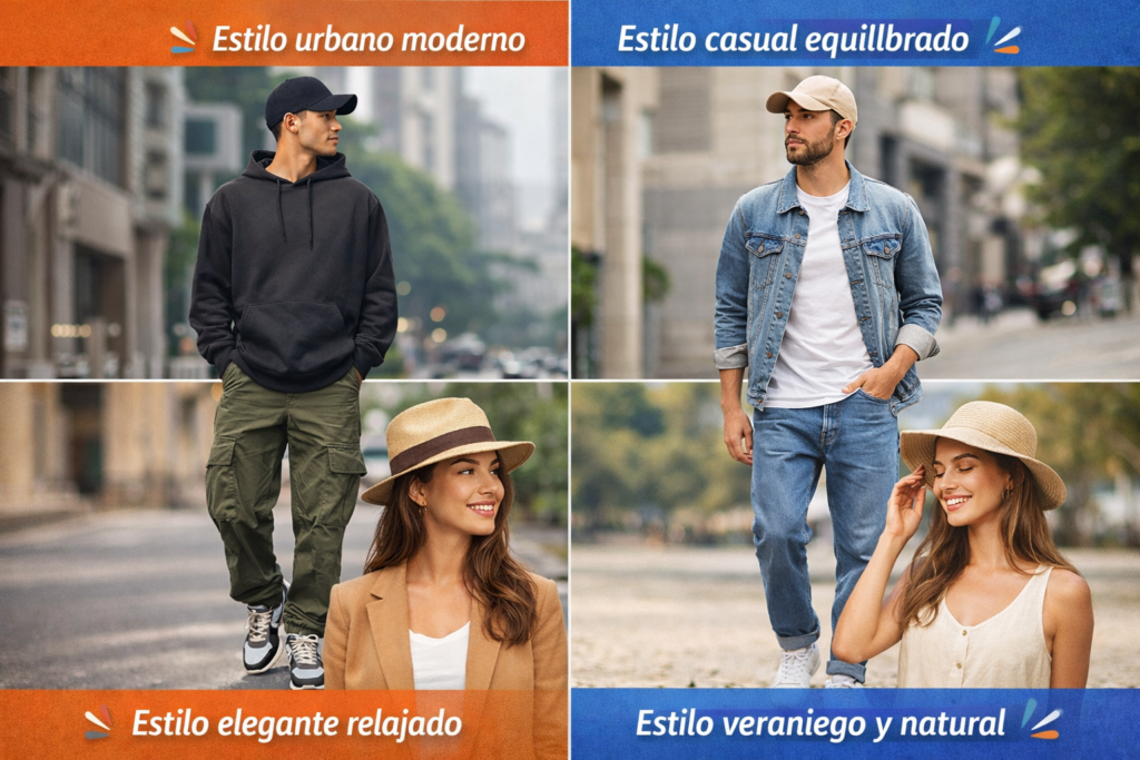 👉 Consejo: mantén coherencia de colores. Si la gorra tiene diseño fuerte, equilibra el resto del outfit..