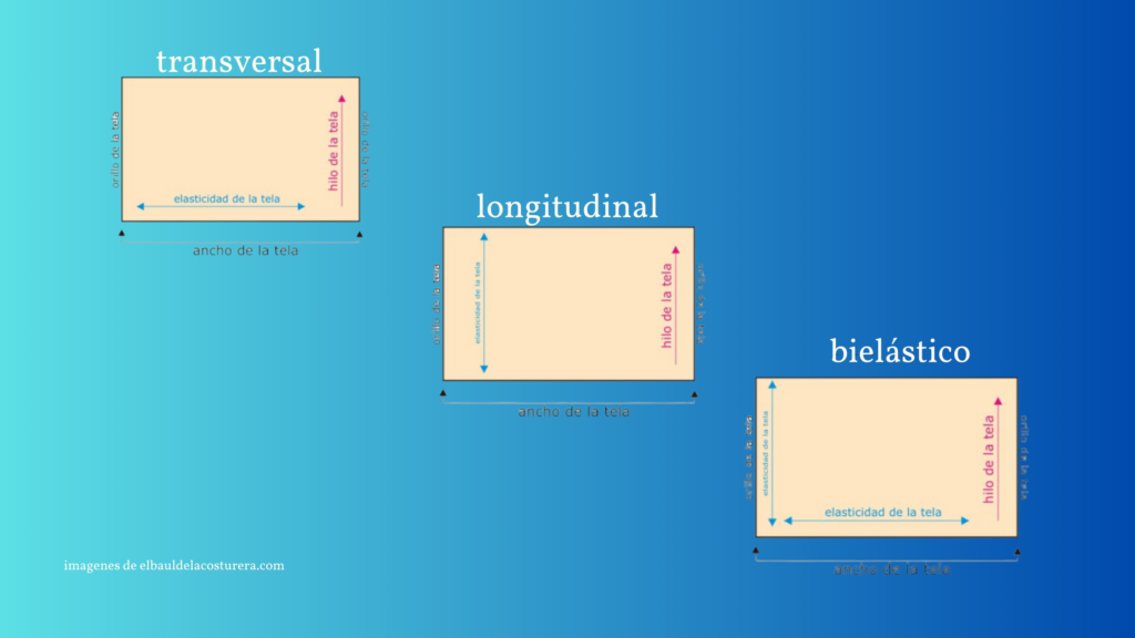 En el caso de los tejidos elásticos, debes vigilar la dirección de la elasticidad. Puede que sea elástico en vertical, en horizontal o bielástico (en ambas direcciones).