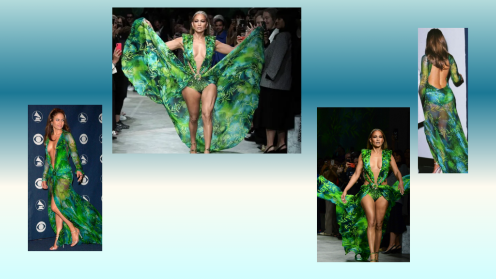 Uno de los momentos más recordados fue el vestido verde de Jennifer López en los Grammy Awards del 2000, un diseño que se ha convertido en uno de los vestidos más icónicos de la historia de la moda.