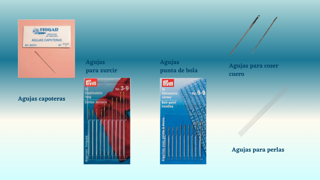 Hay agujas de coser a mano de un montón de variantes según el tipo de tejido y de proyecto que vayamos a realizar.
