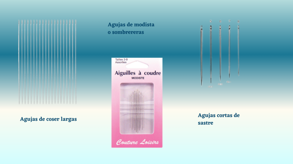 Las agujas de modista o sombrereras son más finas y largas, se utilizaban para confeccionar sombreros.