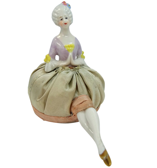 En esta época también se pusieron de moda los alfileteros en forma de muñeca de porcelana, que eran meramente decorativos porque eran sumamente frágiles.