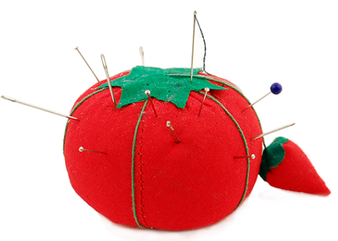 Pero claro, antes solo había tomates en temporada así que lo solucionaron confeccionando uno con tejido rojo rellenado de arena o serrín y unos adornos verdes ¡y se convirtieron en alfileteros!