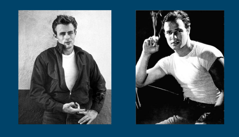 En los años 50 los jeans se asocian con la juventud rebelde y anti-sistema, con estrellas como Marlon Bando y James Dean popularizando esta imagen de ídolo adolescente con gran atractivo sexual.