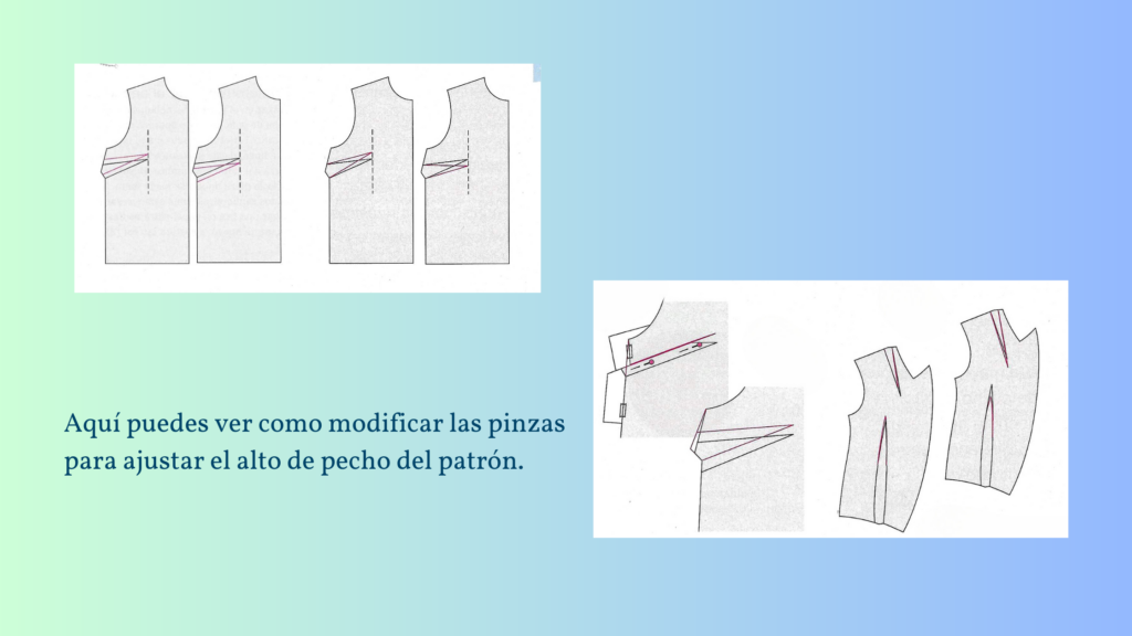 Si el modelo tiene pinzas verticales, solo tenemos que alargarlas o acortarlas según la diferencia de la medida de pecho.