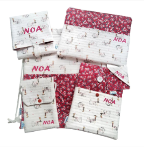 El conjunto está compuesto por mochila de cuerdas, portabocadillos, funda para el móvil, funda de libro con marcapáginas y funda para la tablet.
