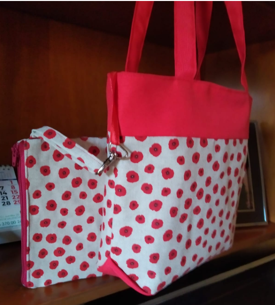 Hizo este gracioso conjunto de tote bag combinando la loneta con un popelín rojo.