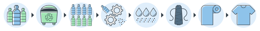 Es poliéster como el original, pero producido a partir de fuentes recicladas, sobre todo botellas de PET, desechos de las industrias de poliéster o, incluso, prendas de vestir.