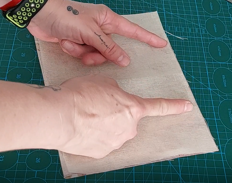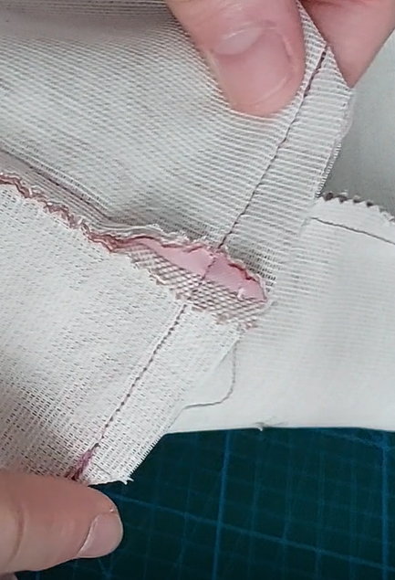 Metemos el dedo por la abertura, colocamos costura contra costura y damos un pespunte por cada una de las cuatro esquinas.