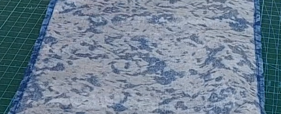 Simplemente dos trozos de tela, nosotros hemos utilizado el mismo marmoleado azul que para el monedero.